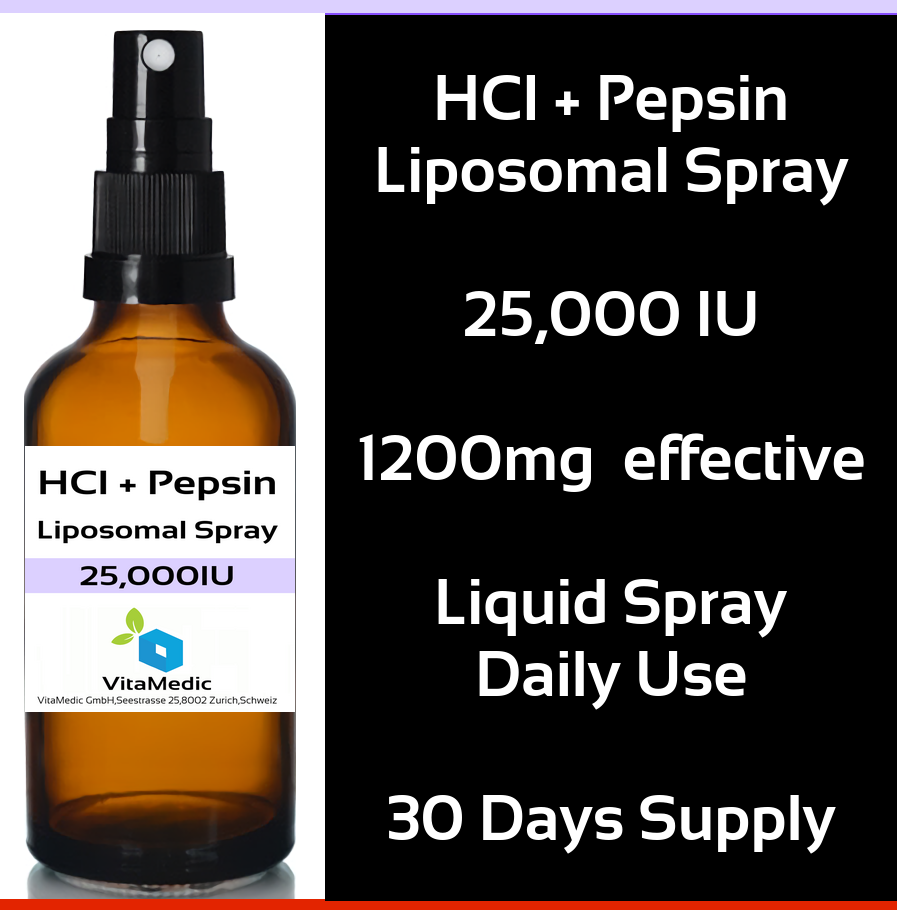 HCl & Pepsin Liposomal Spray 25,000IU 1200mg 30 Days SupplyBuy Today For 20% Off All Listed Prices Below (applied at checkout)
